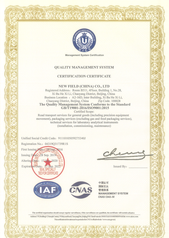 质量管理体系认证证书